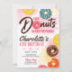 Préparez-vous à célébrer avec une fête d'anniversaire sur le thème des beignes ! Cette invitation ludique et colorée présente d'adorables beignets et un arrière - plan rose sucré.