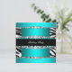 Invitation Turquoise Bleu Noir Zèbre Blanc Bijou Anniversaire