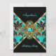 Invitation Turquoise Blue Gold Black Damask Floral Anniversai