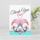 Flamant rose rose Carte de remerciements bleu Ancre et script, et Turquoise et blanc Mariage côtier