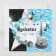 Invitation Turquoise Blue Zebra Rockstar Baby Boy Douche