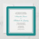 Ces élégantes invitations à la Fleur de Lis Formal Mariage carré sont dotées d'une élégante motif de style Fleur de Lis Damask en blanc sur un arrière - plan vert turquoise. Remplissez vos informations en utilisant le modèle. Cliquez sur customiser pour modifier la police et le placement du texte.