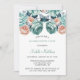 Un étonnant arrangement floral d'aquarelle avec des peonies et des roses turquoise, menthe foncée, pêche et pêche foncée, magnifiquement accentué avec des éléments en diamant et feuillage vert profond. Parfait pour les invitations de mariage élégantes !