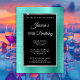 Créez votre propre fêté d'anniversaire de style stylisé 5x7 invitation style pour elle. L'arrière - plan décoratif présente une feuille bleu turquoise imitation brillante, un papier argenté et une solide couverture rectangulaire noire. Déplacez ou supprimez le faux graphique brillant blanc. Customisez les styles, la couleur et la taille des polices blanches. La feuille moderne de luxe est créée avec des éléments d'art numérique qui s'impriment comme une photo. Fabuleux invitation d'anniversaire de fille pour votre meilleur ami. Design turquoise vert, turquoise, argent, gris, noir et blanc pour elle.