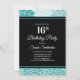 Invitation personnalisée à la fête du 16e anniversaire turquoise et blanc pour filles ados. Contactez-nous pour obtenir de l'aide sur la personnalisation.