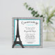 Une invitation glamour à la Quinceanera sur le thème de Paris. Montrer en bleu turquoise, argent et noir. Avec une illustration de tour Eiffel avec un arrière - plan parties scintillant en faux argent. Les dessins sont des graphiques imprimés à plat - PAS de PARTIES SCINTILLANT RÉELLE. Graphiques de JW Illustrations sur MyGrafico