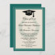Arrière - plan bleu-vert turquoise turquoise avec capuchon de graduation en mortier, avec trois initiales monogrammées. Invitation de troisième cycle pour les diplômés de l'enseignement supérieur masculin ou féminin, pour l'école de commerce, l'école supérieure, la spécialité majeure, l'école secondaire ou tout niveau. Cette invitation à la cérémonie de remise de diplômes ou de remise de diplômes de couleurs de l'école, à prix abordable, est parfaite pour inviter des proches à une journée portes ouvertes, une réception, une soirée décontractée de remise de diplômes. Le design classique comprend l'emblème traditionnel de la couronne de laurier, le monogramme personnalisé, l'écriture de scripts élégants et le vieux monogramme de style anglais. Très facile à personnaliser avec les informations de votre élève. Invitation officiel et classique de style classique pour hommes ou femmes, filles ou garçons de tout âge.