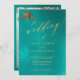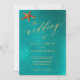 Elégant minimaliste étoile de mer sous l'eau aqua bleu turquoise budget de la plage d'été tout en une invitation de mariage de destination avec votre photo de fiançailles personnalisée, code de numérisation vers le site Web pour les détails invités et RSVP en ligne, et un design moderne script "le mariage de" calligraphie.