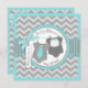 Jumeaux à tirage pointu et douces avec cravate et cravate arc-en-ciel sur le fil de linge et archet et ruban à look 3D pour les jumeaux baby shower carte d'invitation. Les couleurs sont des aquas et des gris.