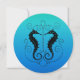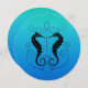 Une perle ronde à l'image vintage dessinée à la main de deux hippocampes noirs et de défilés noirs à l'ombre bleu et vert. Ombre bleu et vert dos. Voir collant vinyle étiquette et taillé sur mesure correspondant. Voir l'ensemble de la collection Under the Sea Invitation des INVITATIONS | Section Invitations et Cartes.