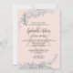 Invitation Typographie argentée Floral rose Bat mitzvah