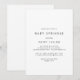 Cette invitation chic typographie bébé sprinkle est parfaite pour un baby shower moderne. Le design simple est composé d'une typographie minimaliste classique en noir et blanc, dans un style boho rustique. Personnalisable dans n'importe quelle couleur. Gardez le design minimal et élégant, en l'état, ou personnalisez-le en ajoutant vos propres graphiques et artwork.