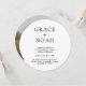 Famille d'Invitations et amis à une célébration mariage simple et élégante avec des invitations spéciales personnalisées et élégantes. Tout le libellé de ce modèle est simple à personnaliser et les couleurs peuvent être modifiées à l'aide de l'outil de design Zazzle. Le design moderne minimaliste noir et blanc présente une photo du couple engagé et une élégante typographie classique. Cette invitation contemporaine chic apporte une touche unique à la célébration de la journée. Félicitations à la mariée et au marié !