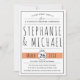 Typographie moderne noir et blanc mariage invitation à la douche avec accent de pêche corail. Il présente votre texte en noir sur blanc et la date de votre wedding shower sur une bannière de pêche corallienne. Le dos comprend un motif avec des croix blanches sur la pêche corallienne.