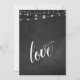 Cette carte de réception de mariage sophistiquée mais rustique présente une image de fond de tableau noir texturé sur laquelle est superposée une image représentant des guirlandes de lumières blanches scintillantes. J'ai utilisé une police de caractères cursive élégante et tourbillonnante pour rendre les graphiques représentant les mots "Réception de mariage" ; au verso, j'ai placé le mot "amour". Votre propre texte est facilement ajouté pour personnaliser ce design autant ou aussi peu que vous le souhaitez. Utilisez les champs de modèle pour simplement saisir vos informations personnelles, et cliquez pour personnaliser davantage si vous souhaitez repositionner l'une des couches déverrouillées. Il y a un léger surlignage noir opaque au-dessus de la couche de tableau noir ; supprimez-le si vous préférez un fond de tableau noir plus clair. N'hésitez pas à me contacter pour des demandes spéciales ou pour obtenir de l'aide pour la personnalisation