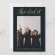 Elle l'a fait ! Cette invitation de graduation est une conception avant et arrière avec le thème vert foncé, 2 photos une invitation arrière.