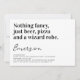 🎉🎂 Invitez amis et famille à célébrer une remise de diplôme avec cette invitation de soirée à typographie drôle. Le texte se lit «Rien de fantaisie, juste bière, pizza et une robe de sorcier.»