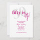 La typographie en gras avec calligraphie 50 est des invitations de fête d'anniversaire astucieuses en rose et blanc. Le dos présente un fond tout rose avec des taches/bulles blanches pour imiter les bulles dans le vin et le champagne pour célébrer comment nous vieillissons comme un bon vin. Tout le texte est entièrement personnalisable.