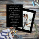 Éléments : typographie manuscrite, polices fantaisistes. Couleurs : texte blanc sur un arrière - plan noir. Thèmes : décontracté, photo, extérieur, romantique, brasserie, lunatique, mariage jardin, mariage chill. Collection : Typographie manuscrite Décontractée Collection de Mariages blancs et noirs Type de produit : Invitations de mariage