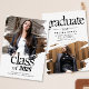 Faites une déclaration audacieuse avec cette invitation de graduation moderne avec des recouvrements de brosse artistique et une forte typographie serif. La carte frontale met fièrement en valeur la photo du diplômé avec "Class of 2026" dans une mise en page spectaculaire, tandis que le dos fournit tous les détails de la fête dans un format propre et minimal. Idéale pour les diplômes d'université ou d'université, cette carte allie créativité et classe, parfaite pour ceux qui veulent une façon unique et élégante de célébrer leur réussite.