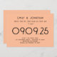 Mariage moderne de typographie simple Peach. Elégance moderne avec ce joli pastel entièrement personnalisable texte élégant seulement design. Personnalisez facilement les mots et, si vous avez un site Web mariage, générez automatiquement un code QR pour lui au verso en remplaçant l'exemple d'URL à celui de votre site Web mariage. Vous pouvez supprimer l'exemple de code QR si cela n'est pas nécessaire via l'option Modifier plus, où vous pouvez également modifier des couleurs et des styles de texte et des couleurs arrière - plans de chaque côté si vous le souhaitez.