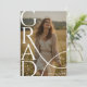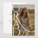 Annoncez une célébration spéciale de remise de diplômes avec cette invitation de fin d'études moderne et photo. Le design présente une typographie « GRAD » verticale en gras qui crée un look stylé et contemporain. Les grandes lettres élégantes encadrent magnifiquement la photo du diplômé, faisant de l'image l'élément principal du design. Un élément de ligne fluide et douce ajoute un détail artistique subtil tout en conservant un style épuré et minimaliste.