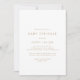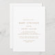 Cette invitation chic à la typographie dorée pour bébé sprinkle est parfaite pour un baby shower moderne. Le design simple présente une typographie classique minimaliste d'or et de blanc, dans un style boho rustique. Personnalisable dans n'importe quelle couleur. Gardez le design minimal et élégant, en l'état, ou personnalisez-le en ajoutant vos propres graphiques et artwork.