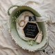 Une belle corbeille verte et luxuriante remplie de trucs pour bébé parfait pour annoncer la grande nouvelle
