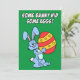 Un certain lapin a caché l'invitation mignonne de chasse à oeuf de pâques de quelques oeufs. Il comporte un lapin tenant un oeuf de pâques géant et coloré. Un grand invitation pour une chasse à oeufs. Sur un arrière - plan vert.