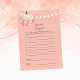 Profitez de cet élégant jeu de baby shower de fille à fleurs d'automne, Guess the baby food. Feux à cordes sur le devant avec petit citrouille et fleurs sous citrouille. Roses, coraux et fleurs jaunes avec un arrière - plan rose vif. Des modèles ont été fournis sur le dos.