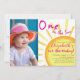 Invitation Un dans le soleil rose et orange premier anniversa