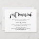 Cette invitation au brunch post-mariage fraîche et moderne présente une écriture manuscrite branchée qui dit "marié", pour un look chic, noir et blanc avec un dos rose vif.