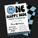 Un Joyeux Garçon Premier Anniversaire Invitation.. "Voici notre 'One Happy Dude Boy First Birthday Invitation' ! 🎉 😊 #Premier anniversaire " "Tourner n'a jamais été aussi amusant ! 🥳 ✉️ #BabyTurnsOne #PartyTime Célébrez le premier jalon de votre petit avec style "One Happy Dude Boy First Birthday Invitation." Cette invitation charmante, avec ses couleurs vives et son design branché captivant, garantit une première impression inoubliable pour la fête de votre fils pour le premier anniversaire. Mélange parfait de plaisir et de sentiment, il capture la joie, l'innocence et l'exubérance d'un garçon d'un an qui entre dans le voyage passionnant de la vie. L'invitation "One Happy Dude" donne le ton d'un événement animé et riant célébrant cette étape importante, créant des souvenirs chéris tant pour les parents que pour les invités.
