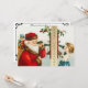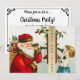 Invitation de fête de Noël facile à personnaliser. Ajoutez simplement vos informations !! Illustration vintage de conception de vacances de Noël victorienne avec un Père Noël à l'ancienne au téléphone à ficelle avec une jeune fille.