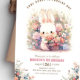 Vous cherchez la meilleure façon d'invitation les invités spéciaux de votre petit à leur première fête d'anniversaire? Ne cherchez pas plus loin que cette adorable et oh-so-mignonne invitation d'anniversaire de lapin! Avec un lapin blanc et mou entouré de fleurs printanières vives et florissantes, cette invitation est la meilleure façon de rendre tout le monde excité par votre fête d'anniversaire du printemps! Les couleurs douces de cette magnifique illustration vous feront sourire et vous feront profiter d'une ambiance magnifique pour votre journée très spéciale. Cette invitation est parfaite pour tout événement d'anniversaire de printemps ou de Pâques. L'Invitation d'anniversaire Rabbit est une façon merveilleuse de montrer votre style et votre créativité unique tout en gardant la fête décontractée. Ce design sera un succès pour les invités de tous les âges et fera de la fête de votre petit un moment inoubliable ! Prenez le stress de planifier la fête du premier anniversaire de votre enfant et faites-le encore plus spécial avec cette Invitation d'anniversaire de lapin! Avec son design charmant et mignon, vos invités seront ravis à la vue de cette invitation ! Rejoignez-vous sur le plaisir et montrez votre côté créatif avec cette invitation unique et ludique!