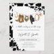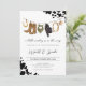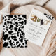 COWBOY COW (NOIR) - Cette adorable invitation de baby shower de Boy Cowboy, Rodeo Cowprint, South Western est entièrement modifiable, peut être imprimée et envoyée par la poste ou l'évènement d'anniversaire peut être partagé par e-mail et les médias sociaux ! Cette Invitation Baby shower Cowboy présente une paire de Casquette Cowboy Boots & Cowboy, Lasso, et un bandana vert accroché sur une ligne, entouré d'empreintes noires. Il y a également un cowprint noir à l'arrière. Ce Rodéo Wild West, Baby shower Invitation est sûr de compléter n'importe quel baby shower à thème occidental, révélation de genre, ou autre événement à thème cowboy! En utilisant le logiciel Zazzle facile à utiliser (pas de téléchargement nécessaire) directement dans votre navigateur, vous achetez et personnalisez tout simplement au même endroit. C'est aussi facile que ça !