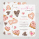 Un peu d'amour est en route, un baby shower de beignes de Saint Valentin avec une adorable illustration originale de beignets en rose, motif de dessert au chocolat avec une typographie en forme de coeur.