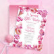 Nous savons que vous êtes impatient de voir votre "Sweet Little Baby" et cette conception de bonbons Baby Sprinkle vous célèbre, vous et votre petit, dans une délicieuse délice! Une délicieuse pâtisserie et un cadre rose bonbon entourent vos détails de douche d'une façon oh si délicieuse. Le dos est orné d'un tourbillon de bonbons en coton pour compléter ce design plus doux que sucré.