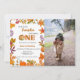 Automne automne Premier anniversaire de Little Citrouille : Cette invitation orange 1er anniversaire a de jolis citrouilles, fleurs et feuilles.