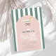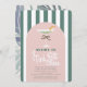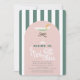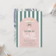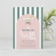 Inspiré par le glamour intemporel des stations balnéaires d'Hollywood et de vintage Beverly Hills, cette invitation à l'anniversaire élégante présente un verre de martini, encadré d'une arche rose saumon douce et de rayures vertes, évoquant palmiers, cocktails et sophistication ensoleillée. Au contraire, vous trouverez des feuilles tropicaux luxuriants pour une touche de paradis rétro. Parfait pour une célébration adulte chic sans effort.