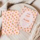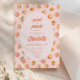 Amusante invitation "douce petite pêche" avec une touche rétro pour les baby showers. Dispose d'un motif pastel mignon, avec arrière - plan rose vif et police orange contrastée.