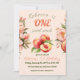 Fresh a juteux ONE Sweet Little Peach Summer Floral 1er Birthday Girl Invitation présenté pêches, fleurs et feuilles verts
