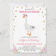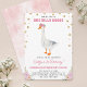 Ces invitations mignonnes à l'oie stupide sont parfaites pour toute petite fille qui fête un 1er anniversaire cette année. Le design est composé d'une oie d'aquarelle peinte à la main avec des accents de parties scintillant rose et or. Le libellé du modèle est facile à personnaliser et vous pouvez trouver des éléments de partie correspondants dans la collection.