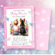 Invitations de douches pour bébé de la fille. Ma petite fille adorable assise à côté de son petit chiot German Shepherd dans une parcelle de jolies fleurs d'aquarelle. Papillons roses et bleus et jolies fleurs sauvages.