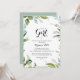 Cette élégante végétation tropicale est une invitation aux baby showers filles est parfait pour un baby shower moderne ou saupoudrer. Le design est composé de feuilles tropicaux à dominante verte avec une touche de fleurs blanches roses soigneusement arrangées.
