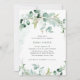 Cette invitation religieuse branchée au baptême ou au baptême présente une élégante aquarelle de verdure eucalyptus, avec beaucoup de feuillage, feuilles verts et branches. Elles décorent un simple arrière - plan blanc avec une typographie de script moderne et une fausse croix d'or.