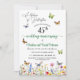 Une élégante invitation à l'anniversaire de mariage verdoyant avec des fleurs sauvages colorés et des papillons que vous pouvez customiser en ajoutant vos détails.