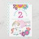 Invitation Unicorn rose Turquoise fille virtuelle 2e fête d'a