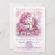 Une jolie invitation à la fête d'anniversaire rose avec une licorne et une fée.