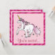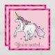 Cet invitation de fête d'anniversaire présente une licorne trottant à travers les étoiles. Pour les articles correspondants, tapez "pingouincoin magasin unicorn" dans la barre de recherche Zazzle.
